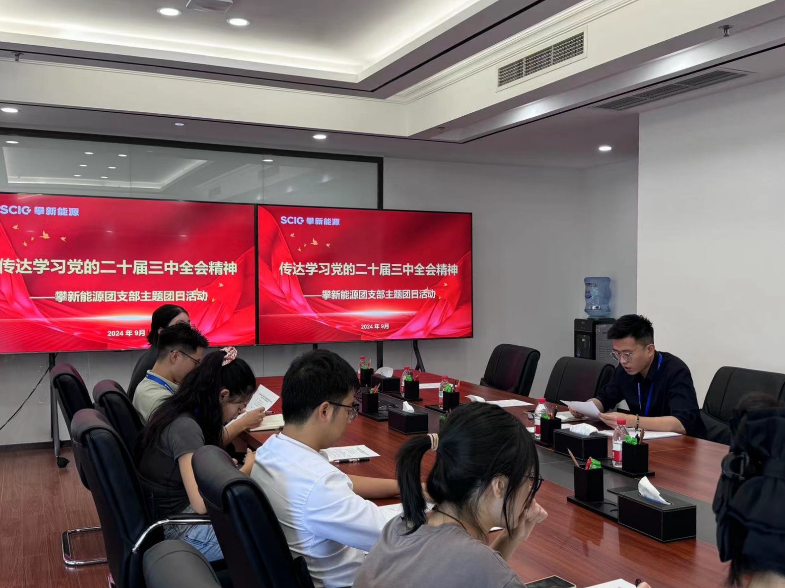 近日,攀新能源公司團(tuán)支部在川投大廈707會(huì)議室舉行2024年9月主題團(tuán)日活動(dòng),專(zhuān)題傳達(dá)學(xué)習(xí)《中國(guó)共產(chǎn)黨第二十屆中央委員會(huì)第三次全體會(huì)議公報(bào)》,學(xué)習(xí)貫徹黨的二十屆三中全會(huì)精神。攀新能源團(tuán)支部書(shū)記、經(jīng)營(yíng)管理部經(jīng)理潘鑫主持并領(lǐng)學(xué),公司全體團(tuán)員及屏山抽蓄公司全體團(tuán)員參會(huì)。