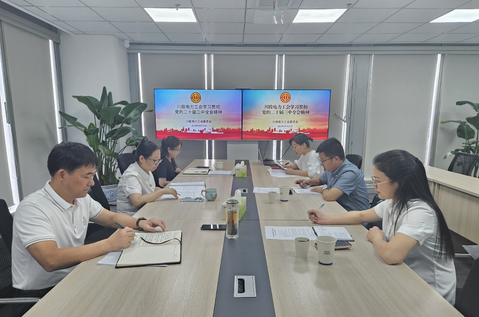 按公司黨委統(tǒng)籌安排和相關(guān)要求,為深入學(xué)習(xí)宣傳貫徹黨的二十屆三中全會(huì)精神,推動(dòng)全會(huì)精神落地落實(shí),9月20日,川投電力工會(huì)召開會(huì)議,專題傳達(dá)學(xué)習(xí)黨的二十屆三中全會(huì)精神。會(huì)議由公司黨委副書記、工會(huì)主席楊鑫主持,工會(huì)委員及相關(guān)成員參加學(xué)習(xí)。