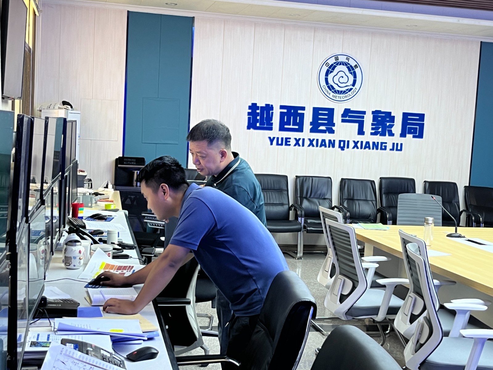 進入越西縣氣象局,葉勁馳一行進入越西縣國家氣象站、縣氣象服務中心,實地查看了越西縣雨情信息收集系統(tǒng),深入了解預警信息制作、發(fā)布和氣象數(shù)據(jù)的采集、傳輸、處理等全流程信息化建設情況。