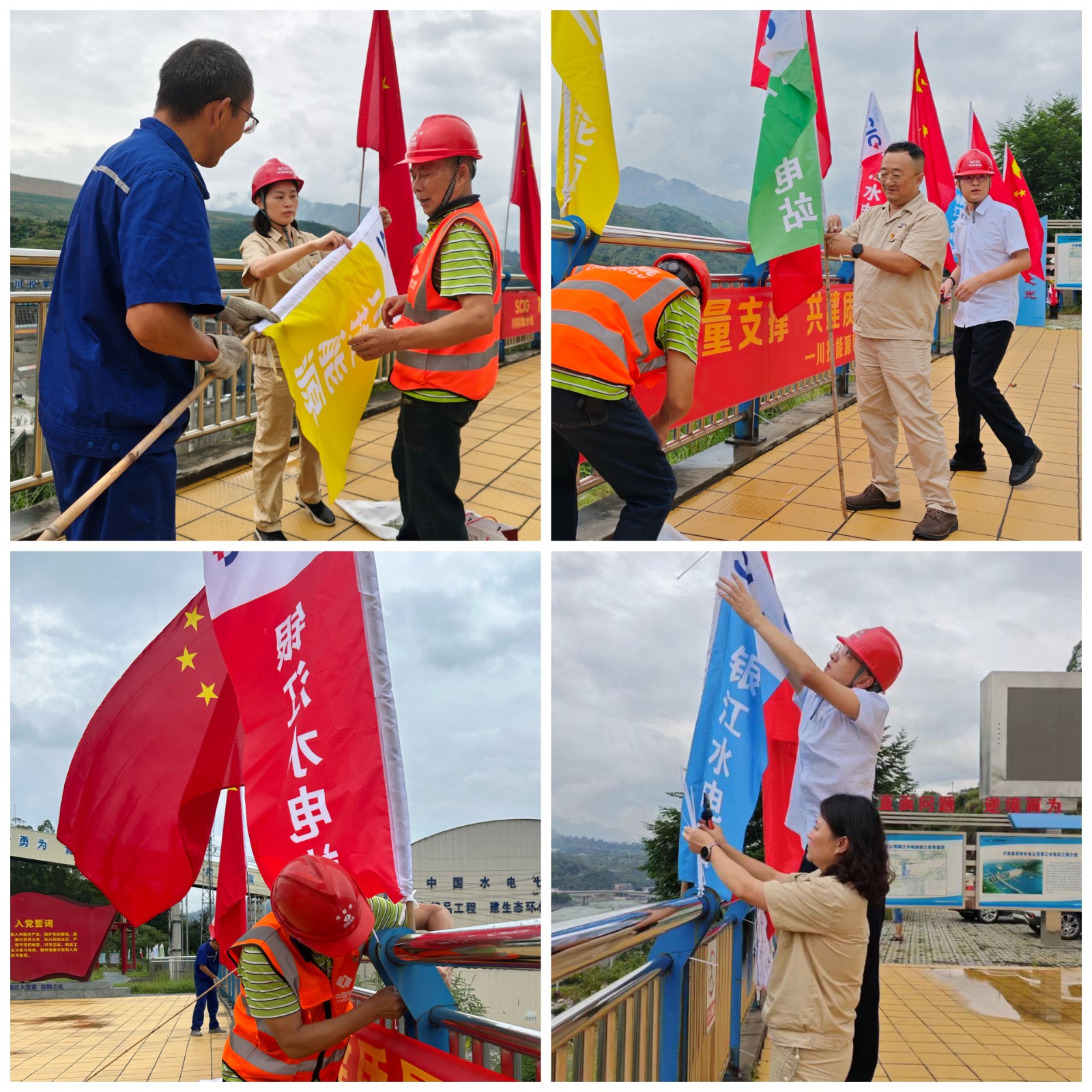 在大家的共同努力下,一面面嶄新鮮艷的五星紅旗,一幅幅絢麗的彩旗掛在黨建宣傳陣地和施工區(qū)域,紅旗彩旗與綠水青山交相輝映,隨著江風(fēng)襲來迎風(fēng)招展,構(gòu)成了金沙江畔的美麗畫卷。每名黨員都用勞動(dòng)之美迎接國(guó)慶節(jié)的到來,用務(wù)實(shí)的工作作風(fēng)確保實(shí)現(xiàn)銀江水電站年底發(fā)電目標(biāo),用實(shí)際行動(dòng)向祖國(guó)母親75歲華誕獻(xiàn)禮。
