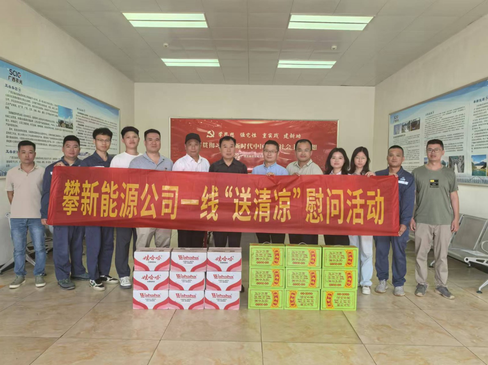 炎夏送清涼,溫情暖人心。攀新能源公司為進(jìn)一步做好防暑降溫工作,深切關(guān)懷在項(xiàng)目現(xiàn)場(chǎng)作業(yè)的一線職工職業(yè)健康,確?,F(xiàn)場(chǎng)安全生產(chǎn),組織開(kāi)展了“送清涼”一線慰問(wèn)活動(dòng)。攀新能源公司黨支部委員、總經(jīng)理周軍帶隊(duì)“送清涼”慰問(wèn)小組,依次前往廣西農(nóng)光公司、桂平光伏電站、廣西融安公司光伏發(fā)電站項(xiàng)目現(xiàn)場(chǎng),為辛勤工作的勞動(dòng)者們送去清涼與關(guān)懷。