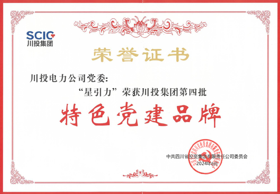 2024年以來,川投電力黨委黨建品牌“星引力”在川投能源黨委的指導(dǎo)下,先后榮獲川投集團(tuán)第四批特色黨建品牌,《中國企業(yè)報》集團(tuán)、紅旗出版社、北京大學(xué)馬克思主義學(xué)院聯(lián)合頒發(fā)的“2024年度全國企業(yè)黨建創(chuàng)新優(yōu)秀案例(黨建品牌案例)”,四川省企業(yè)聯(lián)合會、四川省企業(yè)家協(xié)會聯(lián)合頒發(fā)的“2022-2023年度黨建文化優(yōu)秀成果一等獎”等榮譽。