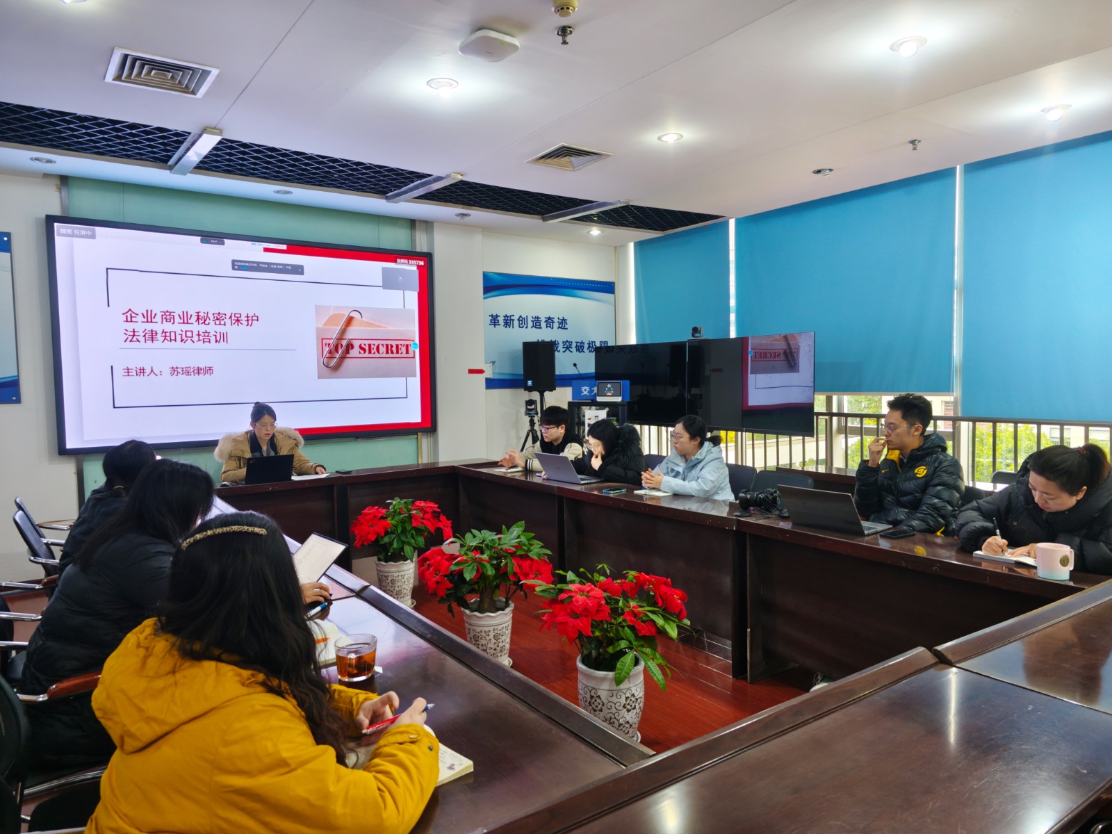 本次培訓(xùn)邀請(qǐng)公司常年法律顧問(wèn)律師蘇瑤主講,她首先解讀憲法基本精神和特征,著重強(qiáng)調(diào)了民主、法治、人權(quán)三大核心價(jià)值,以及在推動(dòng)國(guó)家治理體系和治理能力現(xiàn)代化方面的重要作用。在商業(yè)秘密保護(hù)方面,律師從定義、范圍、保護(hù)措施等入手,緊密結(jié)合企業(yè)管理實(shí)際特點(diǎn),通過(guò)案例分析商業(yè)秘密泄露的常見(jiàn)途徑和后果,詳細(xì)介紹了如何建立完善商業(yè)秘密保護(hù)體系。在信息安全方面,律師結(jié)合《中華人民共和國(guó)網(wǎng)絡(luò)安全法》《中華人民共和國(guó)個(gè)人信息保護(hù)法》等法律法規(guī),從個(gè)人信息安全防護(hù)意識(shí)培養(yǎng)、辦公環(huán)境中信息安全實(shí)踐、網(wǎng)絡(luò)攻擊防范與應(yīng)急響應(yīng)策略、法律法規(guī)遵循與合規(guī)性要求進(jìn)行解析,對(duì)如何提高公司信息安全能力提出專業(yè)意見(jiàn)。