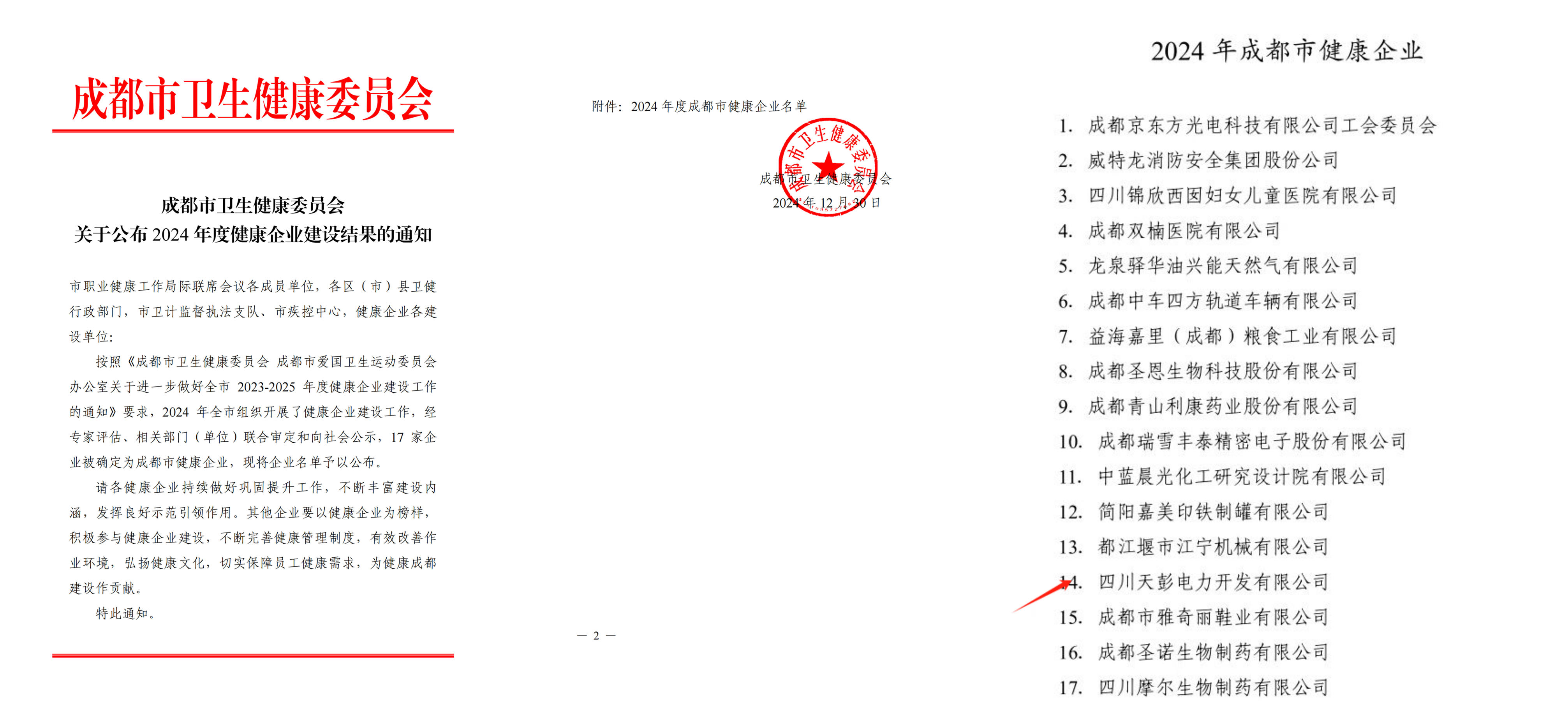 近日,成都市衛(wèi)生健康委員會公布2024年度健康企業(yè)建設(shè)結(jié)果,天彭電力公司順利通過專家組評審驗(yàn)收,被評為“2024年成都市健康企業(yè)”。