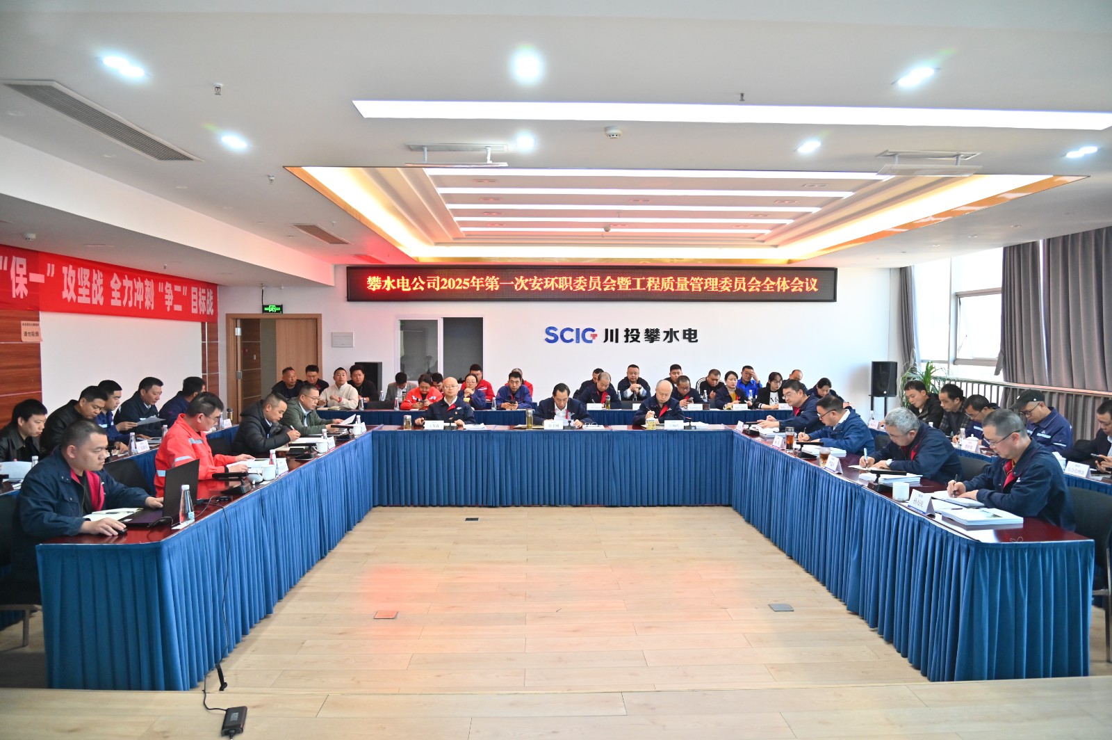 2月17日上午,攀水電公司組織召開了2025年第一次安環(huán)職委員會全體會議。會議由川投能源副總經(jīng)理,攀水電公司黨總支書記、董事長、安環(huán)職委員會主任徐孝剛主持,公司安環(huán)職委員會委員、各參建單位項目部主要負責(zé)人、各參建單位安全生產(chǎn)管理人員及安環(huán)職委員會辦公室成員共計50余人參加會議。