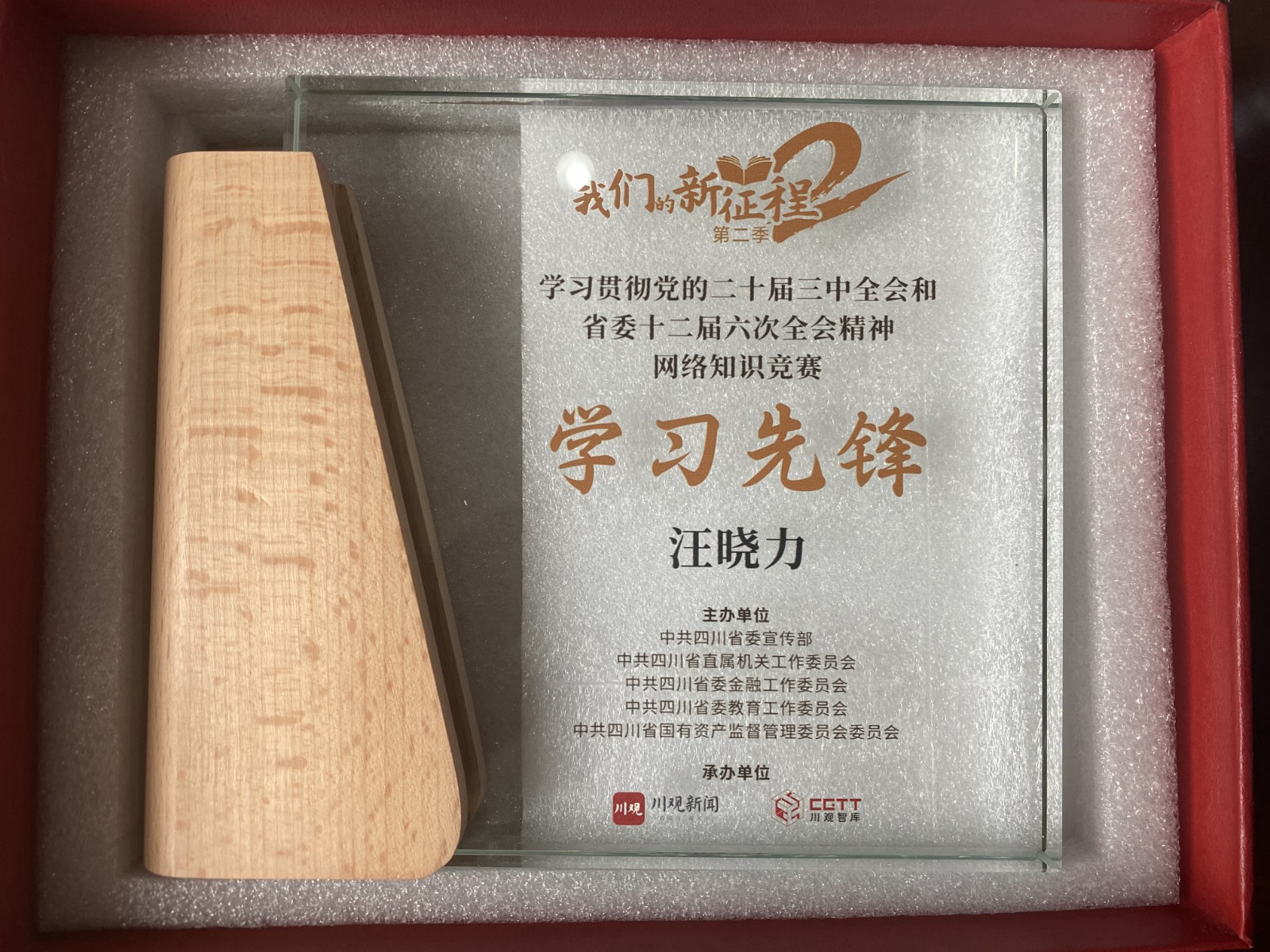 近日,由中共四川省委宣傳部、省委省直機(jī)關(guān)工委、省委金融工委、省委教育工委、省國(guó)資委黨委聯(lián)合主辦,四川日?qǐng)?bào)報(bào)業(yè)集團(tuán)承辦的“我們的新征程”(第二季)網(wǎng)絡(luò)知識(shí)競(jìng)賽公布了獲獎(jiǎng)名單,并為獲獎(jiǎng)人員發(fā)放獎(jiǎng)牌,川投電力所屬天彭電力11名員工憑借扎實(shí)的理論功底和鍥而不舍的努力,從全省32萬余名參與競(jìng)賽的黨員群眾中脫穎而出,進(jìn)入全省個(gè)人排行榜前30名,榮獲“學(xué)習(xí)先鋒”稱號(hào)。