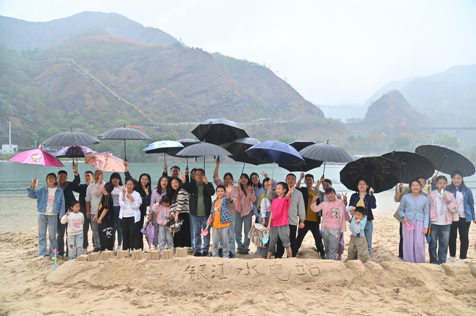隨后,大家來(lái)到銀江湖,親身體驗(yàn)銀江水電站蓄水后給攀枝花市民帶來(lái)的變化。淅淅瀝瀝的小雨絲毫澆不滅孩子們的熱情,他們用小鏟子、小桶挖來(lái)沙堆共同堆砌自己心中的“銀江水電站”。銀江湖畔不時(shí)傳出孩子們的笑聲和歡呼聲,生動(dòng)詮釋了工程建設(shè)與生態(tài)保護(hù)的和諧共生。