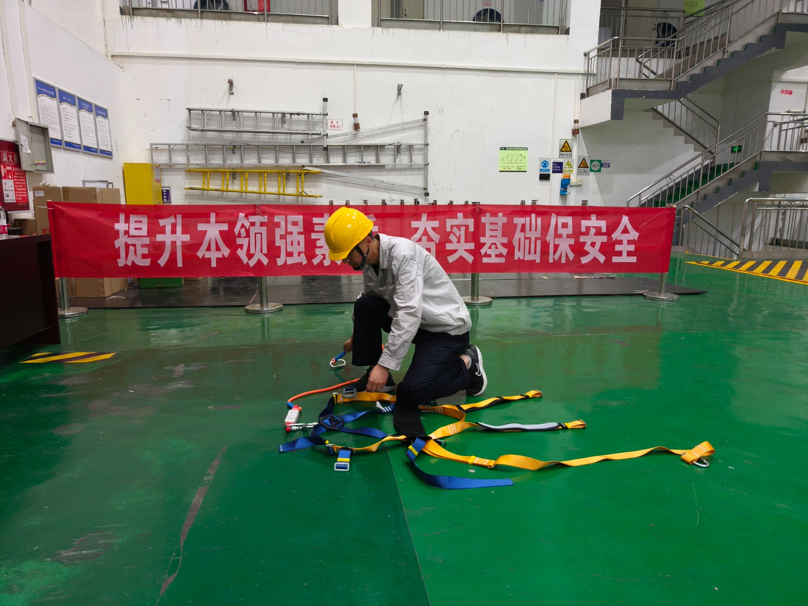 此次賽項(xiàng)設(shè)置緊扣生產(chǎn)需求,共分為理論答題、實(shí)操及模擬操作三部分。理論答題重點(diǎn)考察電力安全規(guī)程、電廠運(yùn)行規(guī)程及電氣專業(yè)知識(shí)。實(shí)操環(huán)節(jié)要求參賽選手在規(guī)定時(shí)間內(nèi)完成對(duì)正壓式空氣呼吸器和五點(diǎn)式安全帶的檢查及穿戴操作,重點(diǎn)考核佩戴規(guī)范性和應(yīng)急響應(yīng)速度及檢驗(yàn)選手對(duì)高空作業(yè)防護(hù)措施的掌握程度。模擬操作“220kV田爾線單相永久接地”和“發(fā)電機(jī)著火事故”項(xiàng)目最具挑戰(zhàn)性,要求選手在模擬故障發(fā)生后迅速判斷情況,按照標(biāo)準(zhǔn)化流程組織處置,選手們既要展示專業(yè)技術(shù)能力,又要體現(xiàn)團(tuán)隊(duì)協(xié)作和組織協(xié)調(diào)能力。競(jìng)賽過程中,選手們爭(zhēng)分奪秒、全力以赴,精細(xì)操作、認(rèn)真作答,充分展現(xiàn)了精益求精、拼搏進(jìn)取的精神風(fēng)貌。