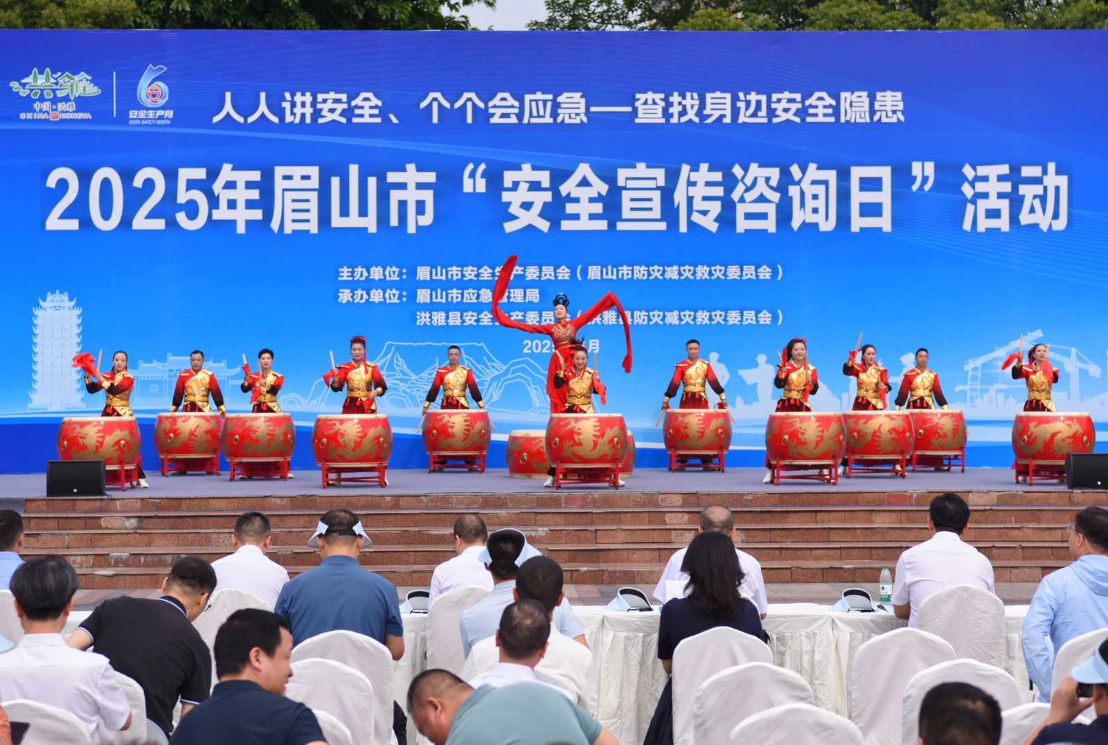 此次活動(dòng)以“人人講安全、個(gè)個(gè)會(huì)應(yīng)急——查找身邊安全隱患”為主題,吸引了眾多市民踴躍參與?;顒?dòng)當(dāng)日,洪雅新廣場上人頭攢動(dòng),熱鬧非凡。大鼓舞隊(duì)的隊(duì)員們身著鮮艷的服裝,精神抖擻地登上舞臺(tái)。隨著音樂的響起,隊(duì)員們揮動(dòng)手中的鼓槌,以磅礴的氣勢、整齊的節(jié)奏敲響大鼓。激昂的鼓聲瞬間點(diǎn)燃了現(xiàn)場氣氛,贏得了臺(tái)下觀眾的陣陣掌聲和歡呼聲。