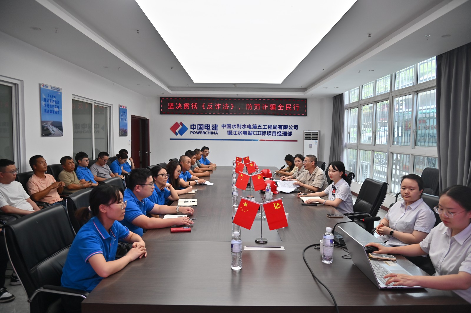 按照省金融辦及省國資委相關(guān)要求,川投能源所屬攀水電公司結(jié)合自身實(shí)際,于6月19日聯(lián)合中國銀行金曦苑支行到銀江水電站參建單位工地開展防范非法金融活動(dòng)相關(guān)宣講。中國銀行金曦苑支行行長羅欣及相關(guān)人員,攀水電公司資金財(cái)務(wù)部、綜合管理部及相關(guān)人員,水電五局銀江項(xiàng)目部員工及建設(shè)一線工人共計(jì)30余人參加活動(dòng)。