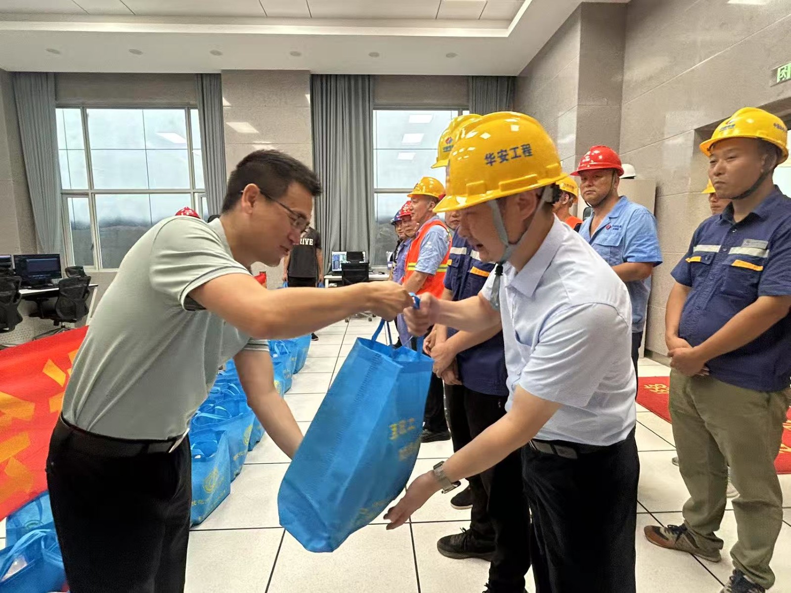 張平一行在現(xiàn)場了解了銀江水電站工程建設(shè)和安全生產(chǎn)情況,向一線人員送上了洗發(fā)露、沐浴露、洗衣液等清涼物資300余份?!肮蛠淼牟粌H是清涼,更是暖心!”大家紛紛表示,雖然天氣炎熱,但感受到了“娘家人”的貼心關(guān)懷,一定會克服高溫困難,時(shí)刻牢記“安全第一、生命至上”理念,以更加飽滿的熱情投入工作中。