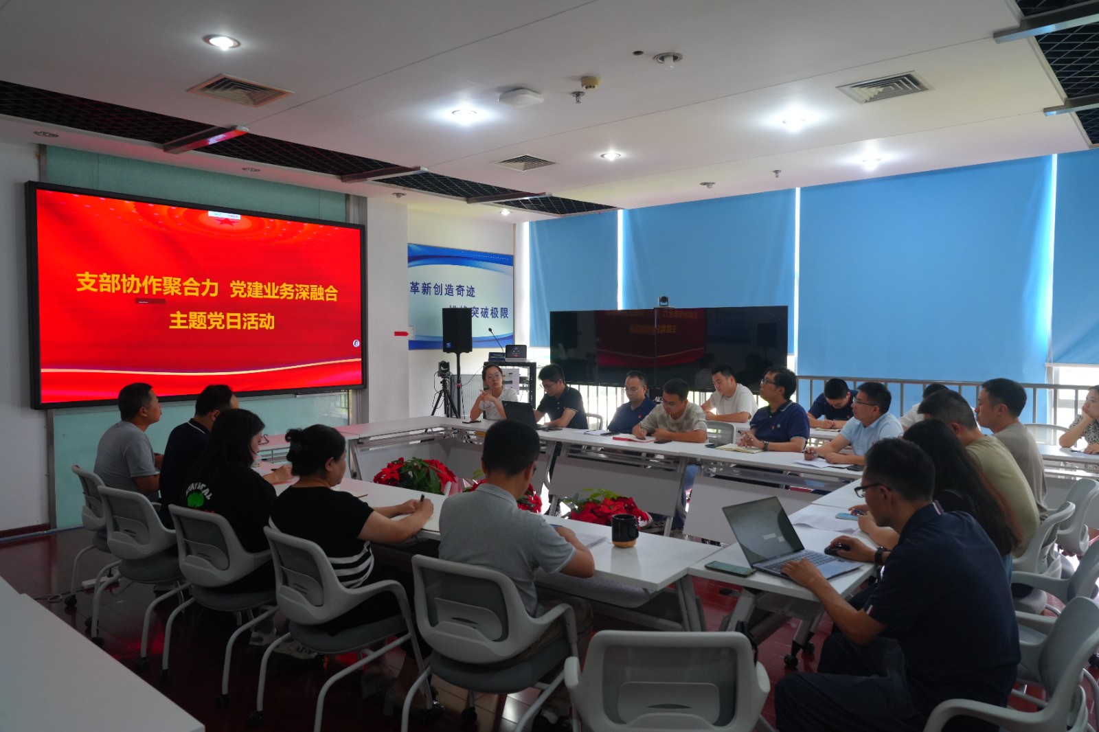為進一步探索黨建與業(yè)務深度融合路徑,提升黨建質(zhì)量、激活發(fā)展動能,共同推進黨建工作與業(yè)務工作同頻共振,7月24日,交大光芒黨總支所屬三個黨支部聯(lián)合開展“支部協(xié)作聚合力,黨建業(yè)務深融合”主題黨日活動。活動由第一黨支部書記、公司副總工程師王輝主持,各支部黨員參加。