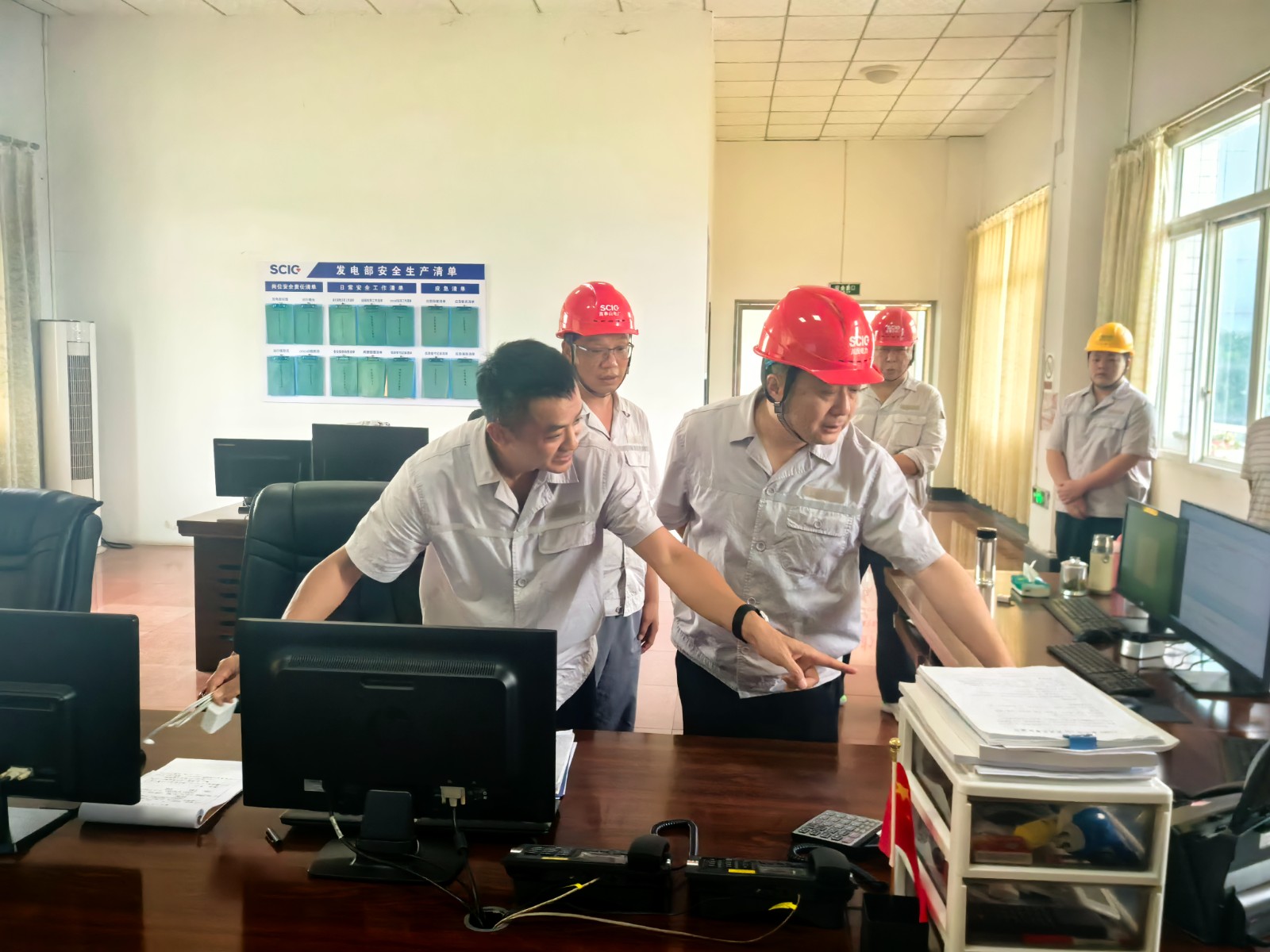 楊濤一行直奔生產(chǎn)現(xiàn)場,實地查看了大壩樞紐、發(fā)電機組、中控室、防汛物資儲備點等關(guān)鍵區(qū)域,詳細詢問了當前水庫水位、來水趨勢、設(shè)備運行狀態(tài)及防汛應(yīng)急預(yù)案落實情況。在聽取電廠關(guān)于汛期安全工作的匯報后,楊濤對電廠前期防汛工作給予肯定,并就做好近期安全工作提出工作要求:一是強化責(zé)任落實,嚴格執(zhí)行24小時防汛值班制度,確保各級責(zé)任人到崗到位。二是排查風(fēng)險隱患,針對極端天氣可能引發(fā)的山洪、滑坡等風(fēng)險,開展拉網(wǎng)式排查,對發(fā)現(xiàn)的問題建立臺賬、限期整改,確保不留死角。三是完善應(yīng)急預(yù)案,加強實戰(zhàn)演練,確保應(yīng)急響應(yīng)迅速有效,保障電站及下游群眾安全。四是統(tǒng)籌發(fā)電與防汛,科學(xué)調(diào)度水庫庫容,平衡發(fā)電效益與防洪安全。