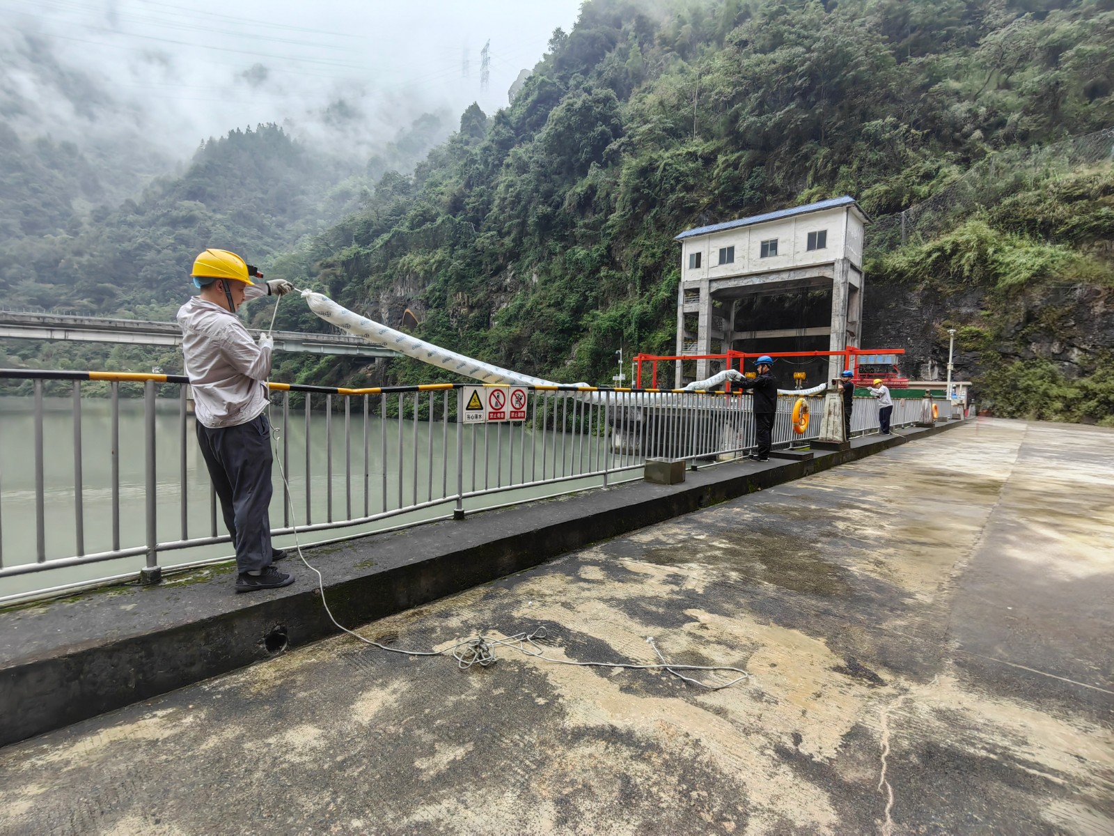 本次演練背景設(shè)定為電站大壩2#泄洪閘左側(cè)齒輪箱突發(fā)漏油,約50升齒輪油濺落至庫區(qū)水面并擴散,值班人員發(fā)現(xiàn)險情后立即啟動應(yīng)急響應(yīng)。中控室迅速協(xié)調(diào)上下游鍋浪蹺、匯溪電廠調(diào)整出力流量并協(xié)助布設(shè)攔油設(shè)施;運行組與應(yīng)急搶險組攜帶吸油氈、攔油索等器材趕赴現(xiàn)場,對漏油點進行封堵,同時在閘門前和水面關(guān)鍵區(qū)域鋪設(shè)攔油繩,防止污染擴散;后勤保障組全程待命,確保物資供應(yīng)和人員安全。經(jīng)過30分鐘緊張有序的處置,油污被徹底清理,庫區(qū)水質(zhì)未受影響,演練圓滿完成。