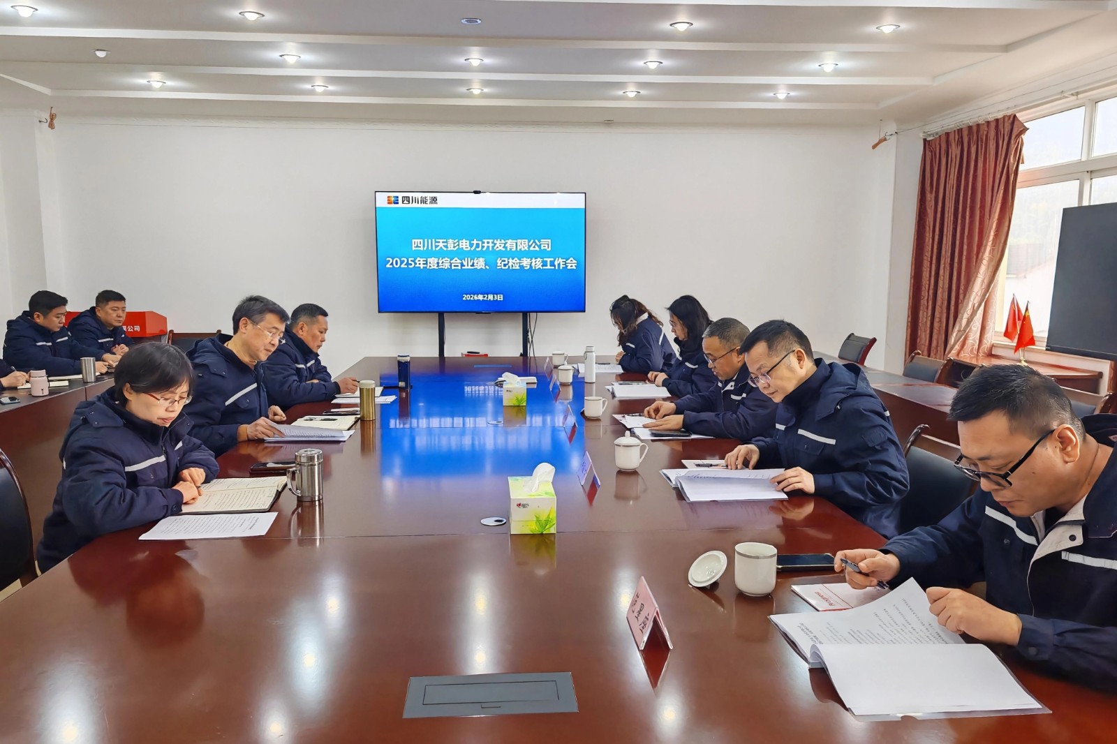 為切實發(fā)揮考核“指揮棒”作用,壓實工作責任、推動企業(yè)高質(zhì)量發(fā)展,根據(jù)川投電力統(tǒng)一工作安排,近日,川投電力副總經(jīng)理、天彭電力考核組組長陳云明率考核組一行,赴天彭電力開展2025年度綜合業(yè)績及紀檢工作專項考核。考核組成員、天彭電力領(lǐng)導班子全體成員、全體中層干部及員工代表參加考核會議,會議由川投電力計劃合同部副經(jīng)理劉應心主持。