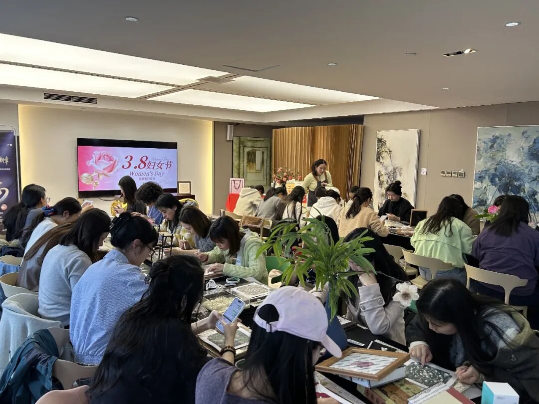 交大光芒工會(huì)組織開展“奮進(jìn)‘十五五’ 巾幗建新功”主題活動(dòng)。活動(dòng)在干貨滿滿的普法課堂中拉開序幕,圍繞防范電信網(wǎng)絡(luò)詐騙、理財(cái)風(fēng)險(xiǎn)識(shí)別等關(guān)切話題,普法宣傳將專業(yè)知識(shí)轉(zhuǎn)化為實(shí)用錦囊,切實(shí)增強(qiáng)了女職工的金融安全意識(shí),為女同胞們送上了一份別具意義的節(jié)日“安全禮包”。在手工創(chuàng)作環(huán)節(jié),大家用心體驗(yàn)宋錦珍珠畫制作,以針為筆、以珠為墨,將溫潤珍珠點(diǎn)綴于宋錦之上,穿針引線間感受傳統(tǒng)工藝魅力?,F(xiàn)場氣氛溫馨專注,一幅幅精美作品在指尖綻放,大家在創(chuàng)作中放松身心、收獲滿滿成就感。