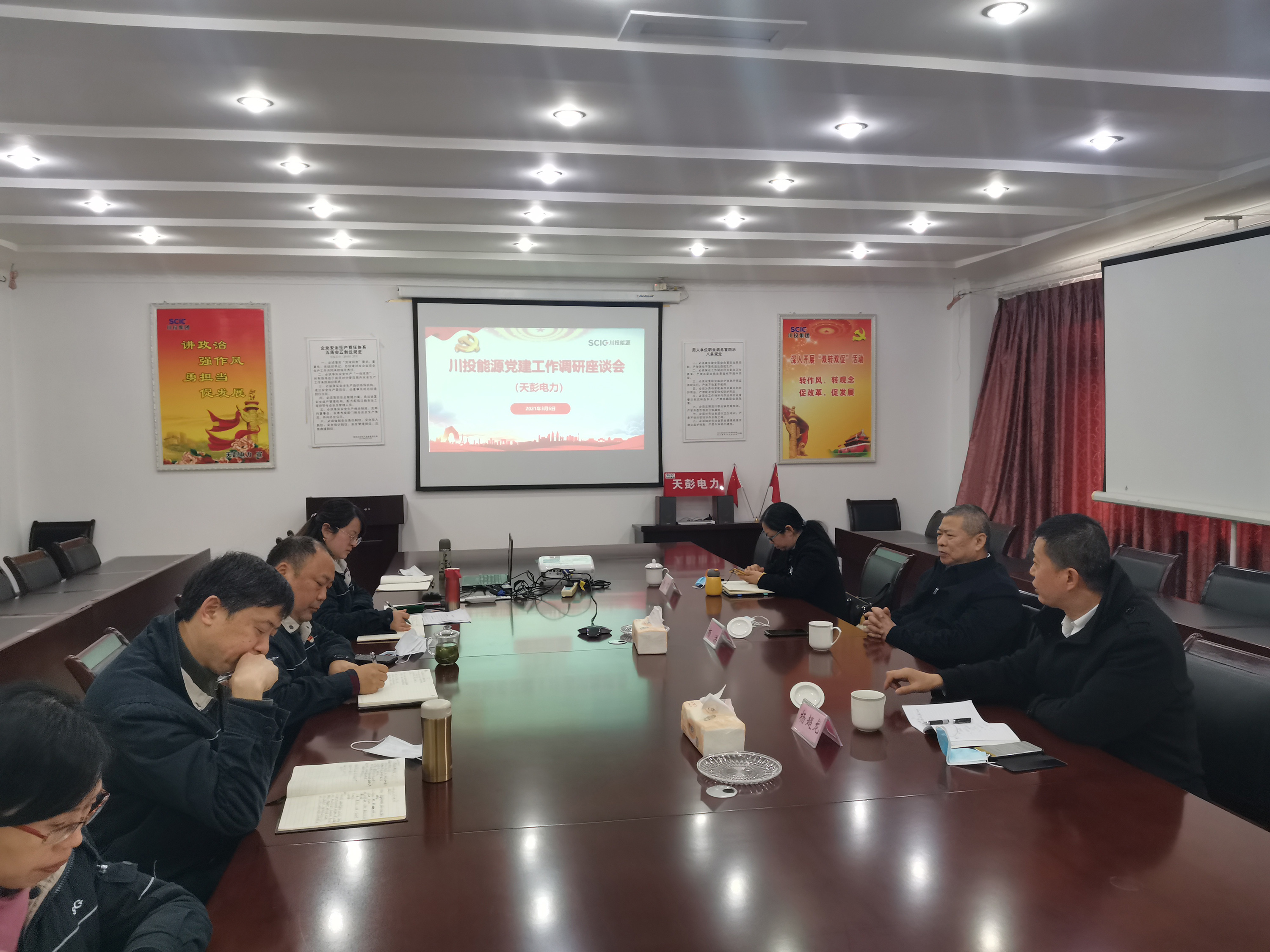 為扎實(shí)推進(jìn)基層黨建工作任務(wù)落實(shí)落地落細(xì),面對(duì)面、點(diǎn)對(duì)點(diǎn)指導(dǎo)解決工作推進(jìn)中存在的難題和問(wèn)題,3月5日,川投能源黨委書(shū)記、副董事長(zhǎng)、總經(jīng)理?xiàng)詈閹ш?duì)前往到天彭電力開(kāi)展黨建工作調(diào)研。天彭電力班子成員、相關(guān)部門(mén)參加調(diào)研座談會(huì)。