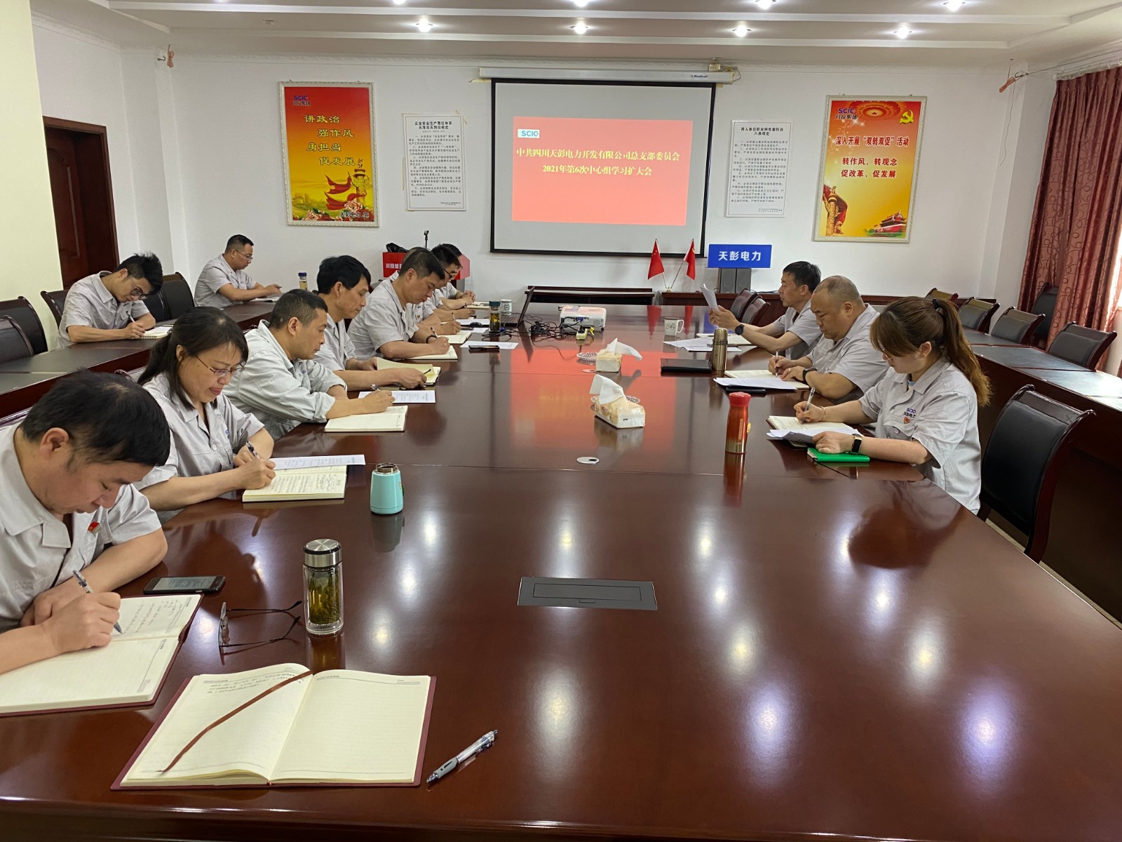 6月8日上午,川投能源天彭電力黨總支在公司二樓會議室召開2021年第6次中心組學(xué)習(xí)(擴大)會,公司領(lǐng)導(dǎo)、黨員干部和關(guān)鍵崗位人員參加會議,會議由黨總支書記、總經(jīng)理陳忠主持。