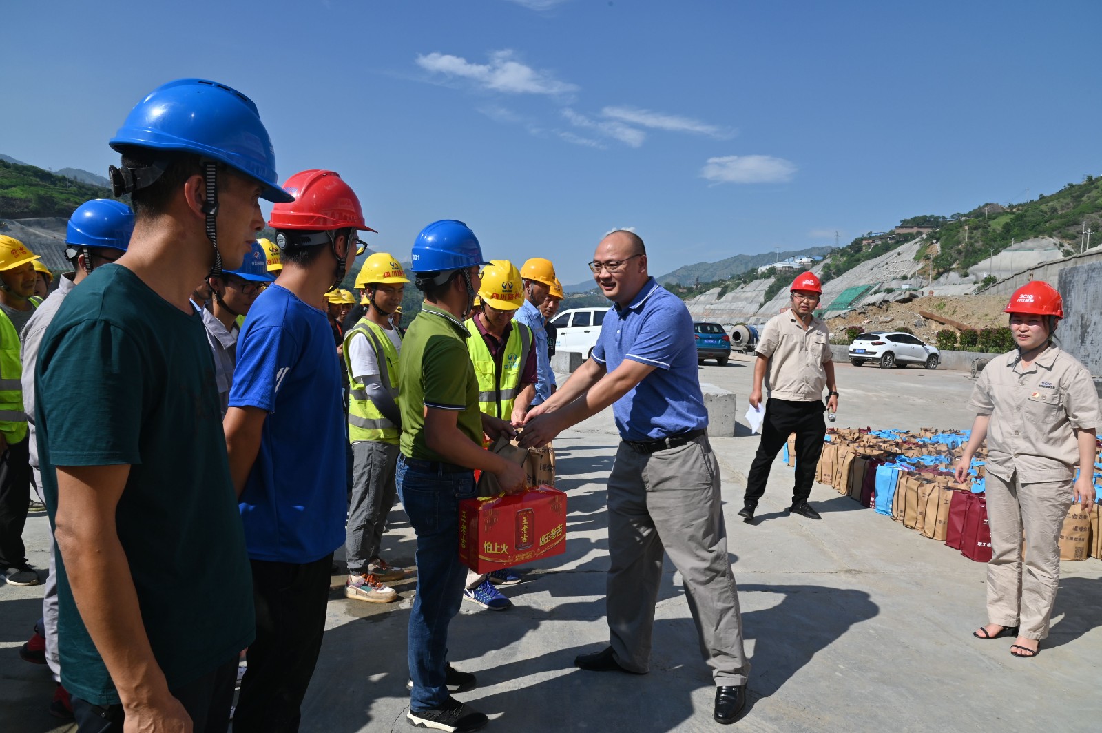 7月以來(lái),攀枝花氣溫持續(xù)升高,為了保證一線職工在高溫環(huán)境下安全、清涼工作,近日攀枝花市東區(qū)總工會(huì)黨組書記、常務(wù)副主席劉貴平一行來(lái)到川投能源銀江水電站施工現(xiàn)場(chǎng)愛(ài)心驛站,為一線建設(shè)者們送來(lái)了300余份清涼解暑飲品和防暑降溫用品,慰問(wèn)奮戰(zhàn)在高溫一線的作業(yè)人員和管理人員。