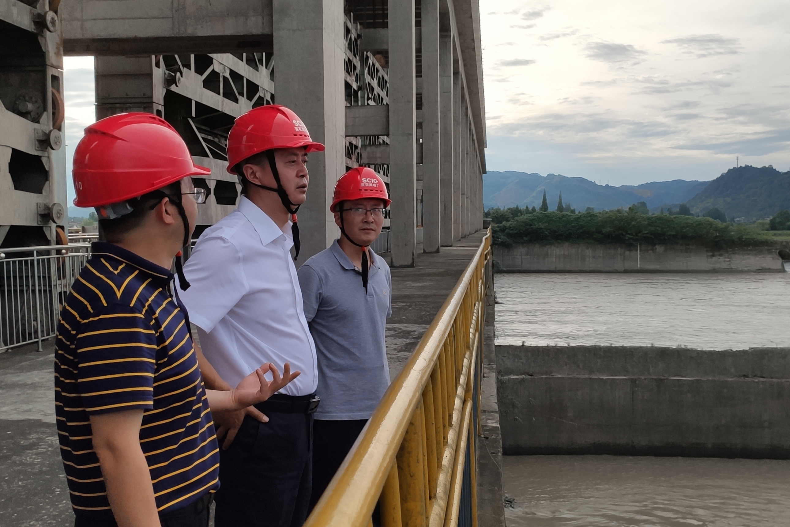 正在百花灘指揮搶險的川投電力副總經(jīng)理王偉、陳云明和百花灘電站廠長姜健、高奉山電站廠長姚磊等陪同調(diào)研。